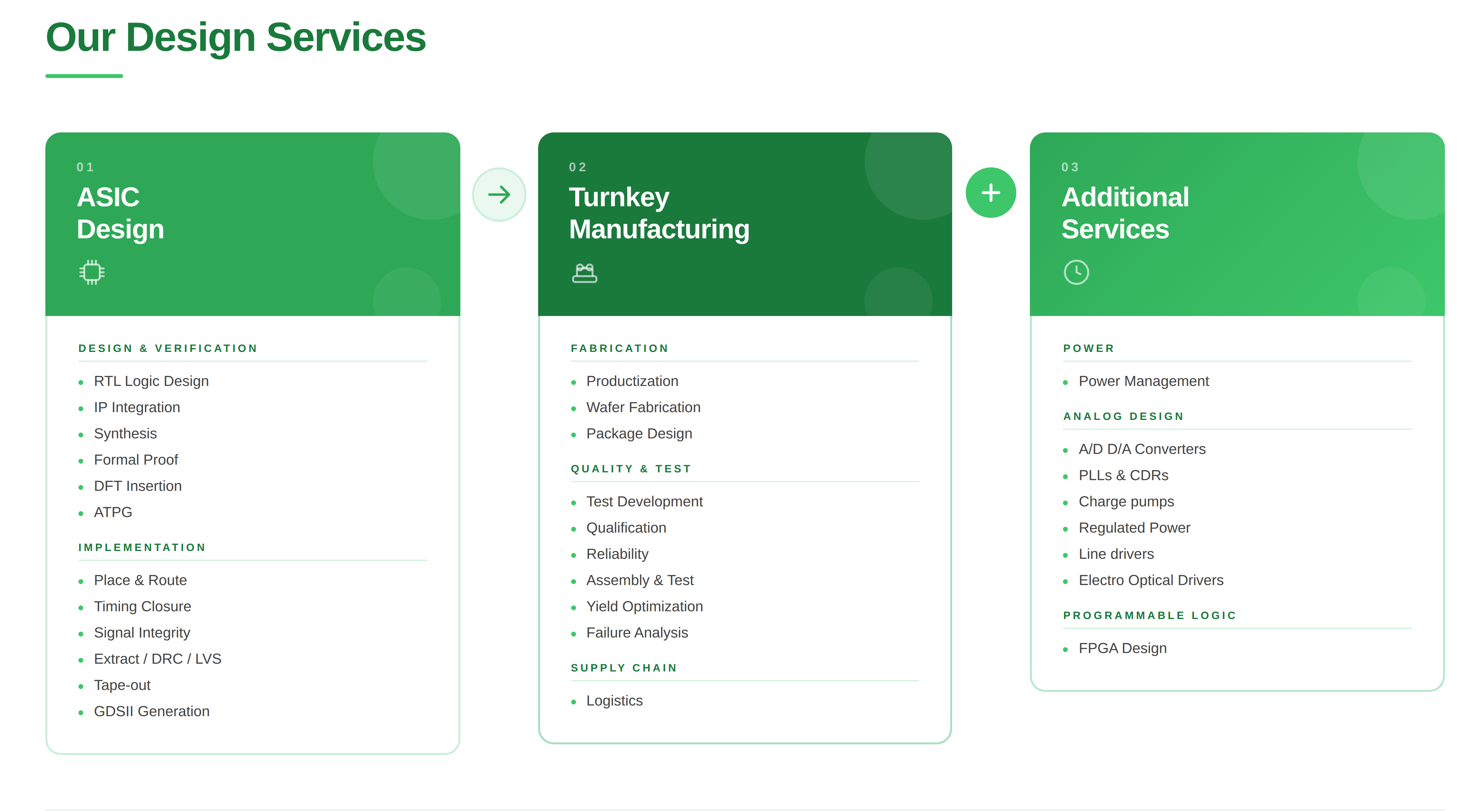 AAS maintains a strong in-house team with a wide variety of specialized skills in ASIC/SoC, analog and FPGA design; product engineering and production handling. Our team will help you not only to design the chip, but to find the best vendors for your project and to arrange a smooth tape-out and corner lot characterization. We'll develop for you the most attractive packaging solution and most efficient test program. Our team provides you with timely deliveries of superior quality products.