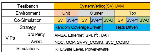 - SV-C: SystemVerilog-C co-sim. Tests are written in C, DUT contains CPU.